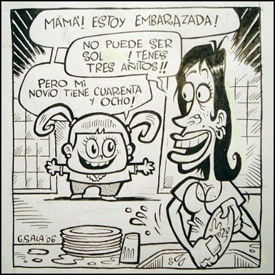 La tira es un formato muy lindo, pero a veces se puede convertir en una especie de prisión, porque estas bastante acotado en cuanto al espacio del que dispones. A veces uno se encapricha en resolver una idea en una tira cuando iría mucho mejor en una página completa o en dos o en tres. La tira exige una síntesis y una economía de recursos, que lo que uno dibuje y cuente se entienda y se lea claramente y no quede todo apretado y metido a lo bestia. Pero a las tiras…las quiero.