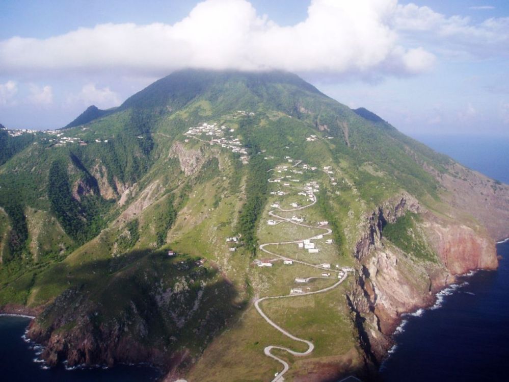 Cerremos con mi favorita, la isla de Saba. Saba es la isla más pequeña de las Antillas Holandesas. tiene 1.400 habitantes. Y así se ve desde un avión: